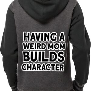 The good quality fabric of Having a Weird Mom Builds Character Varsity Hoodie is soft and comfy to wear all day. No itch, no smell. Cool Zip Hoodie features long sleeves, two pockets, and hood, easy to pair with everyday wearing. It is suitable as a gift and to wear for daily occasions like home, gym, street, party, office and etc. Thanks to the unique print on the back Funny Hooded Sweatshirt will never be out of date.