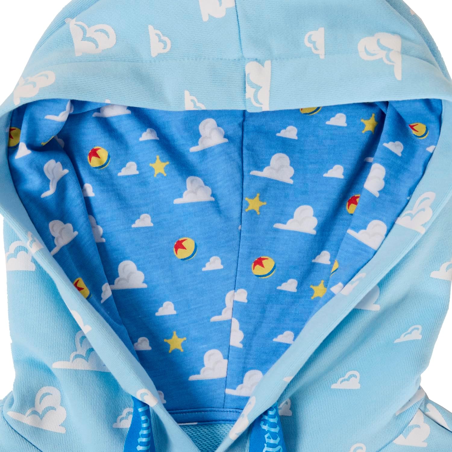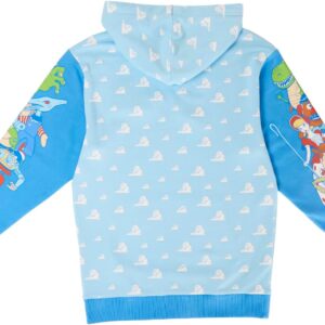 Round up your pals, it’s time to play! The Loungefly Toy Story Good Vs Baddies Unisex Hoodie brings together our favorite toys from the Disney-Pixar animated film. On the front, the clouds from Andy’s bedroom walls appear in an all-over print while the Toy Story logo appears above. Covering the sweatshirt’s sleeves, Andy’s toys gather together on one side while Sid’s toy creations appear on the other. The cloud design continues onto the back and hood of the sweater, and the hood has an inside lining of clouds, stars, and the Pixar ball. This cozy hoodie adds a playful element to any outfit and is the perfect wardrobe item for kids at heart.