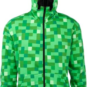 Minecraft Men’s Creeper Premium Zip-Up Hoodie, Green